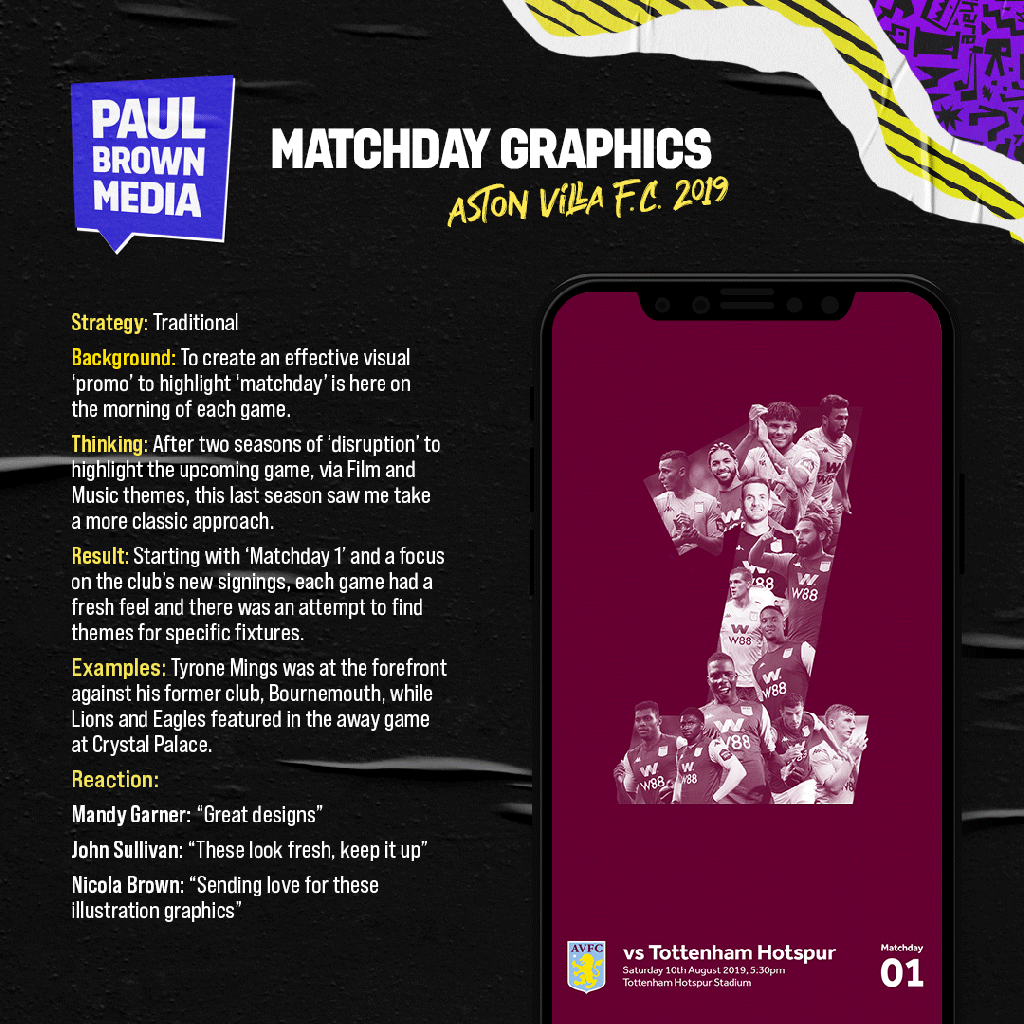 This current 2019/20 season saw me take a more classic approach to the club’s matchday graphic promotion.