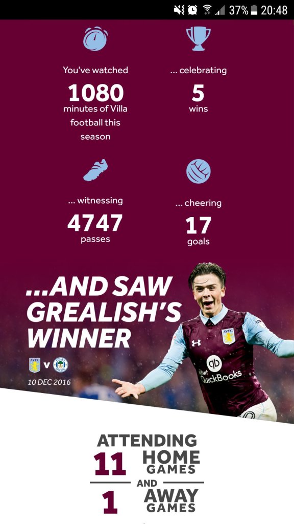 For example, you’d be able to see how many Jonathan Kodjia goals you’d witnessed, the distance you’d travelled to matches and video highlights for key club moments.